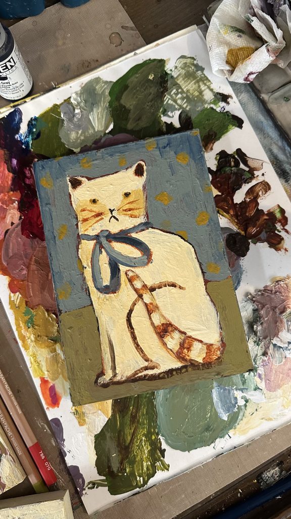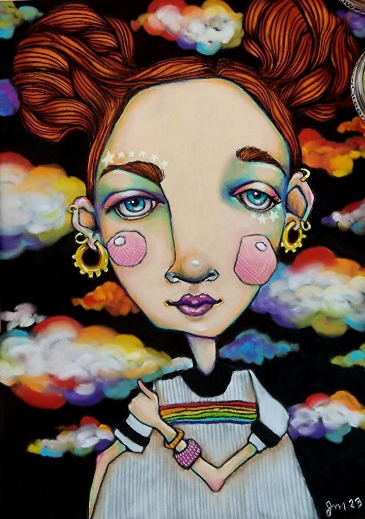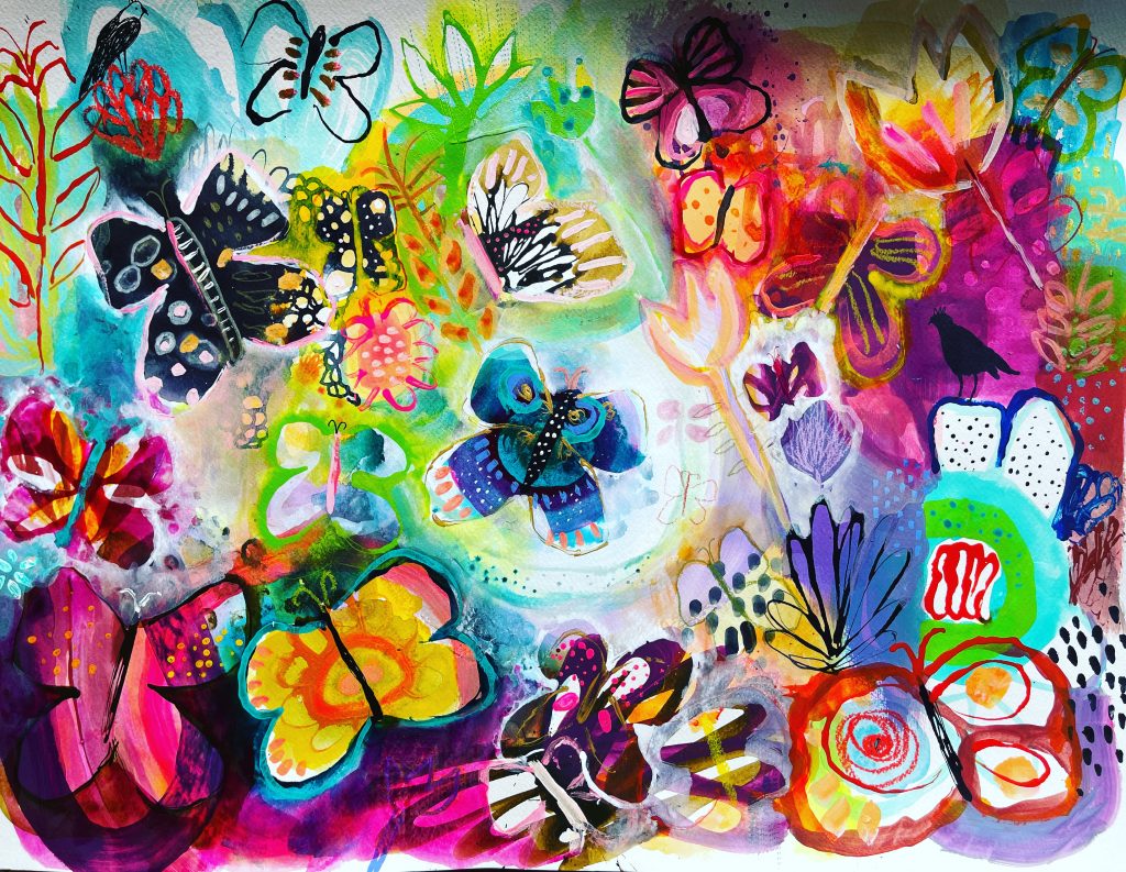 I am a mixed media artist living in Queensland, Australia. I typically describe my art as messy, exploratory, and often whimsical. I love to experiment and challenge myself with different techniques, materials and subjects – splashing paint around is my favourite thing to do! My main objective in creating art is to capture emotion and charm.