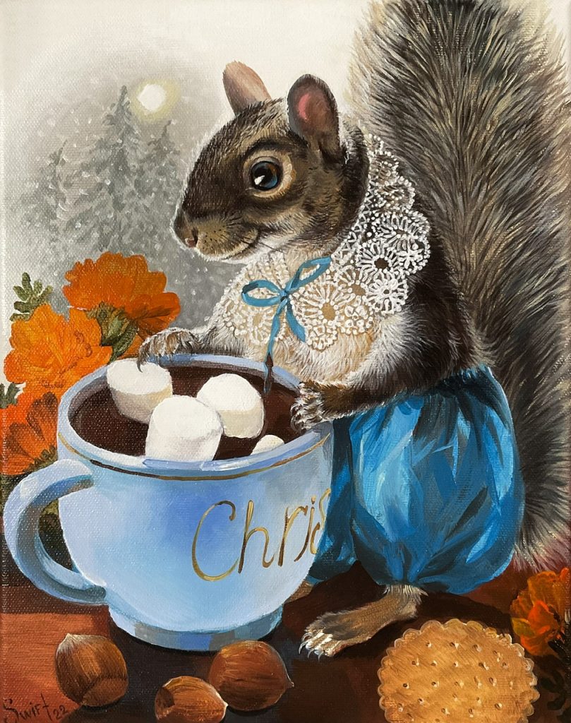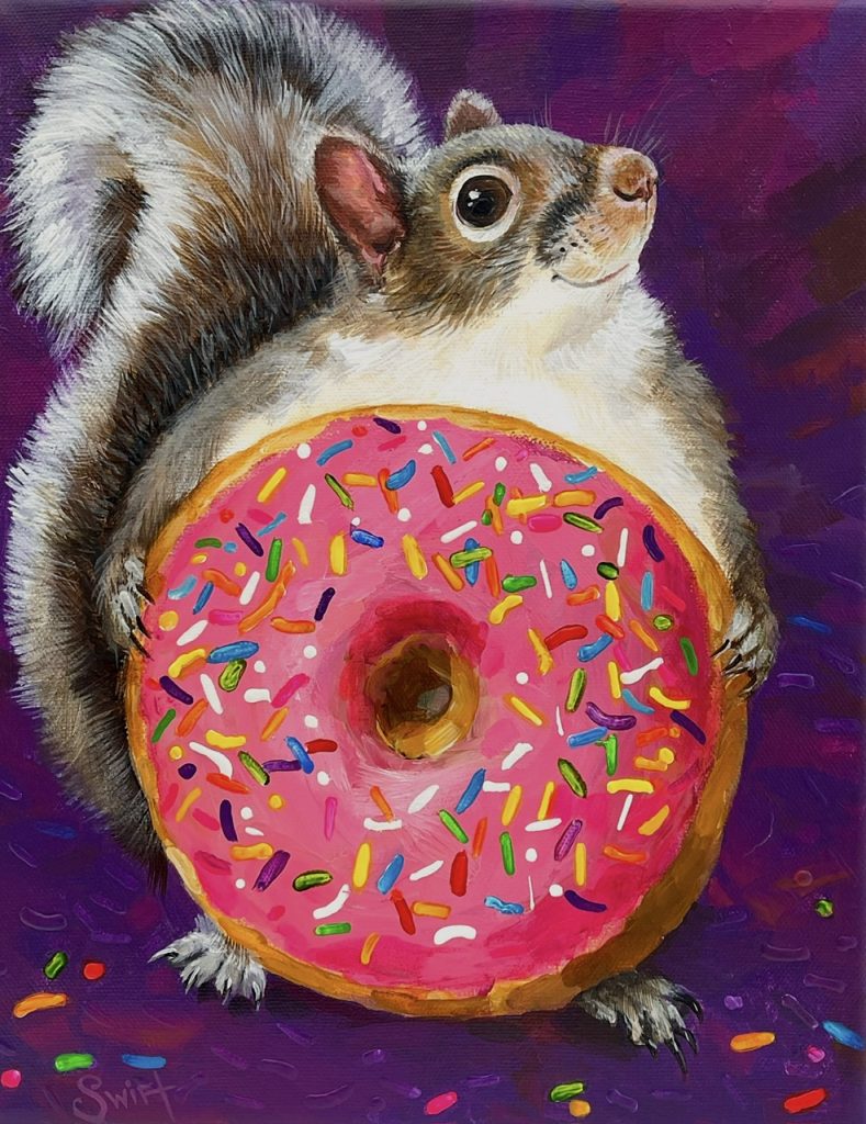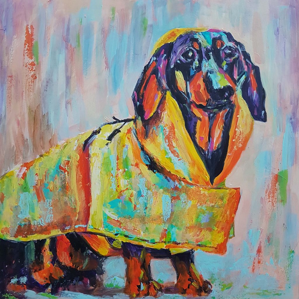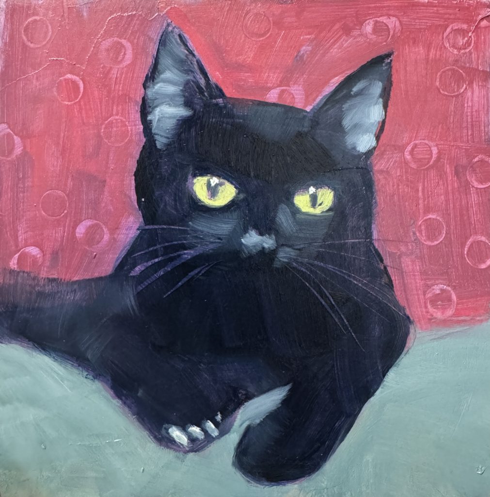 Cyndy Ross is a multi-faceted artist and native Oregonian. After 2-1/2 years working on a degree in graphic design, she left university and spent the next 25 years dipping her toes into everything artsy and craftsy while raising four children in the woods of the Pacific Northwest amongst a menagerie of animals. Colorful, expressive portraits have been her focused passion for the past 6 years. Lately she has been expanding her repertoire to include figures, often with animals. She loves instilling humor and quirkiness into her work. When she’s not painting, you can find her walking in the woods, knitting dishcloths, gardening, and reading.