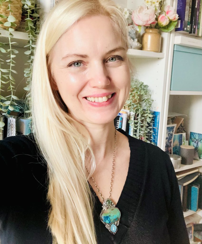 Annie Hamman is a visionary artist, online art teacher, poet, Akashic Records reader and shamanic practitioner based in South Africa. She describes her art as spiritual, healing story art. She uses nature found items in her creations and often refers to her artistic process as channeling the Great Spirit of Life. Her art depicts medicine women, power animals, shamans of old, plant medicines spirits, like Ayahuasca, goddesses, angels, and enlightened beings. Many of her artworks are accompanied by poems, written by her during painting process. She works in acrylics and large variety of other media, paints on drums, makes healing sculptures, spirit art jewelry and shamanic sacred tools, like rattles, medicine bags, prayer wands and ceremonial masks. Her website offers blog, Akashic readings, online classes, available originals and reproductions, and commissioned work page