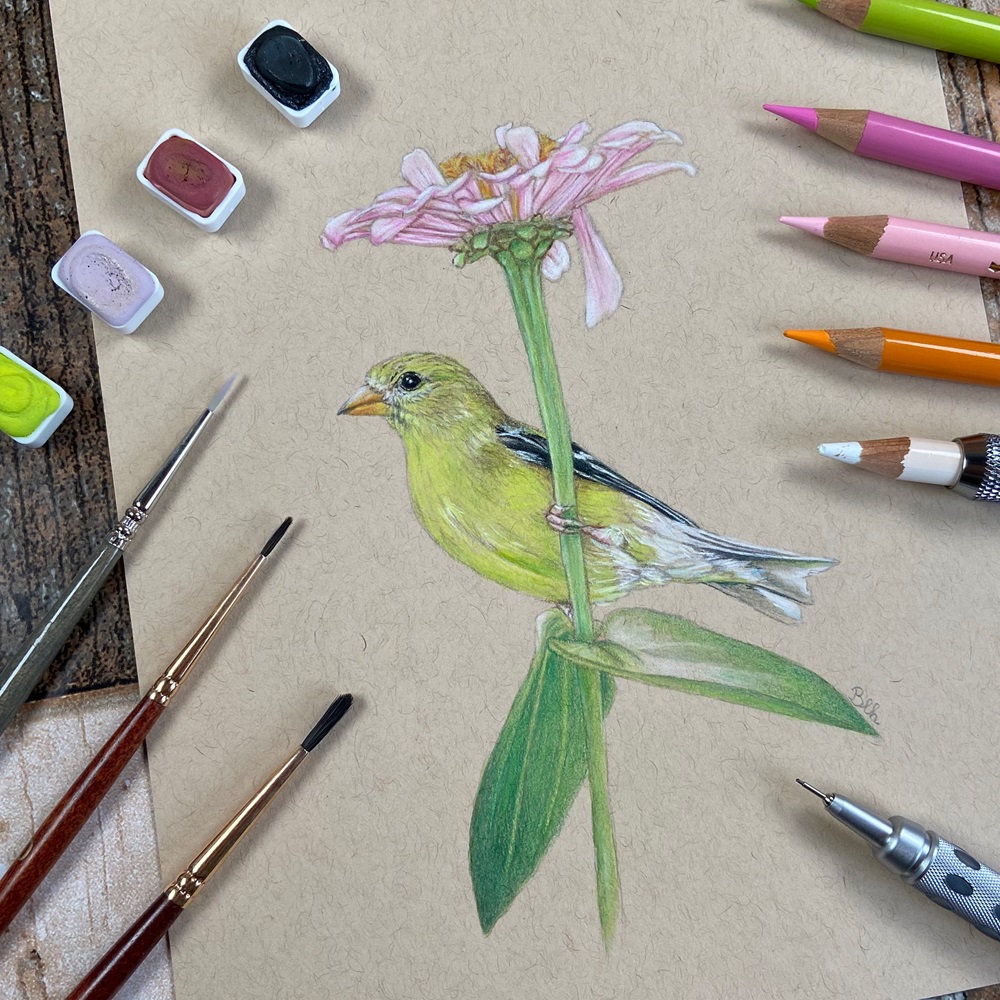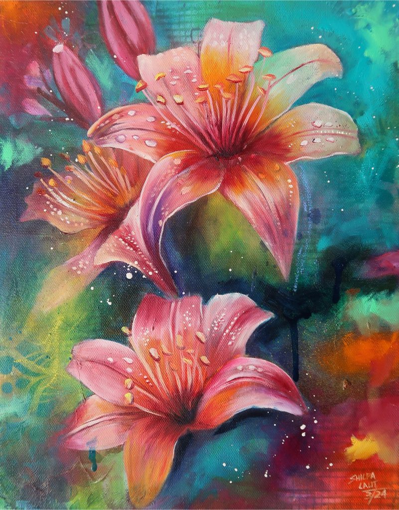 Nowadays she creates in several different mediums such as watercolor, graphite, colored pencil, acrylics and oils. She also loves to play and experiment with mixed media. She loves to put a lot of details in her creations. She works with different subjects, from portraits to nature (flowers, insects, pets,etc.).