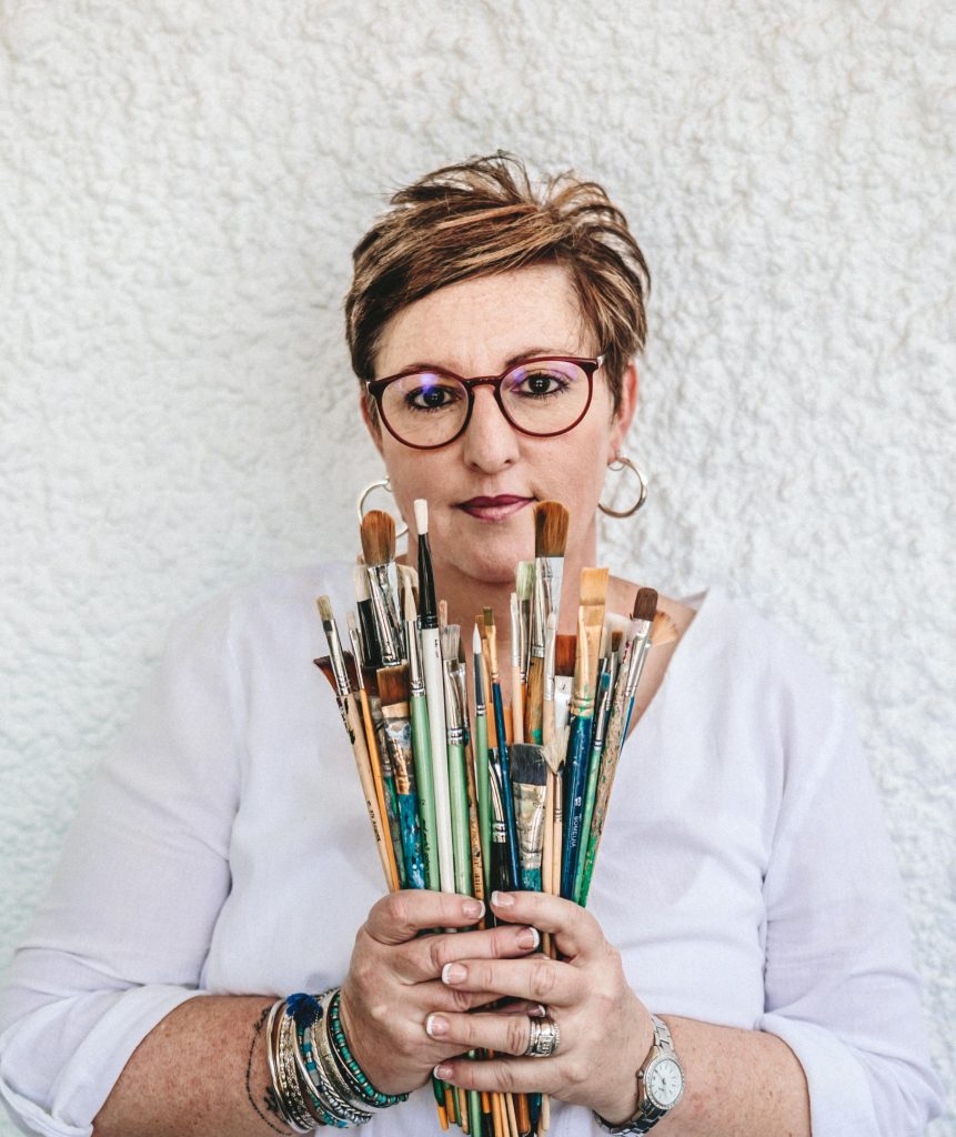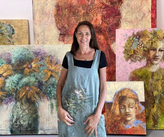 Marina Teding van Berkhout is a Dutch artist living in a small village near Grasse in the South of France. During her business studies in Amsterdam, the Netherlands, she began painting in watercolours and continued to do so for many years. She later transitioned to oil paint and discovered the cold wax medium technique, which she absolutely loves. Always seeking new ways to express herself, she now also paints in acrylics and water-based cold wax, employing the same techniques she uses in oil and cold wax painting. Primarily self-taught in painting, Marina studied Figure Drawing at the ‘Académie of Beaux-Arts Anca-Sonia’ in Grasse. She draws inspiration from the environment she inhabits, finding beauty in old buildings, weathered shutters, cracked walls, and picturesque villages abundant in France. These elements inspire her to create beautiful textured backgrounds. Marina is passionate about painting faces, figures, and flowers, and she enjoys sharing her passion in person and online with a rapidly growing number of students. Her paintings are sought after by collectors from around the world