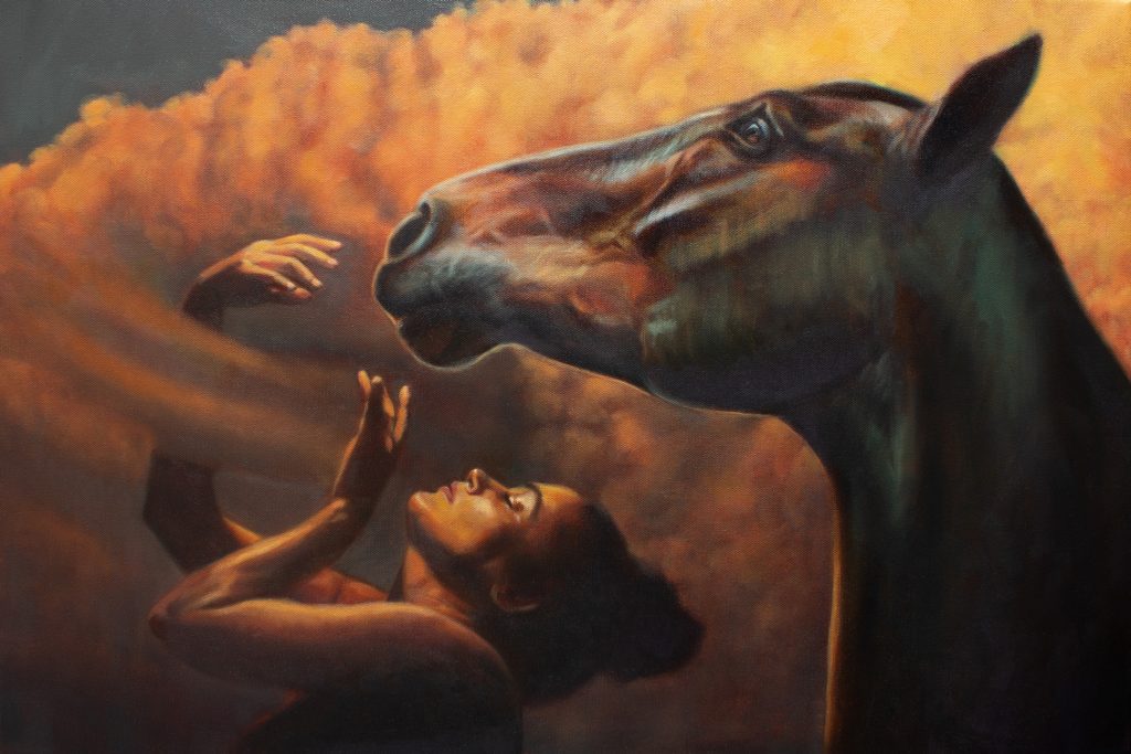 Building upon previous years in contemporary portraiture, Natasha’s more recent work looks beyond the physical subject – diving into the realms of deeper consciousness and the human relationship with the natural and spiritual worlds. The artist often uses herself as model and muse, in part as a matter of immediate practicality, but more so to add creative depth to the messages that she conveys through her art.