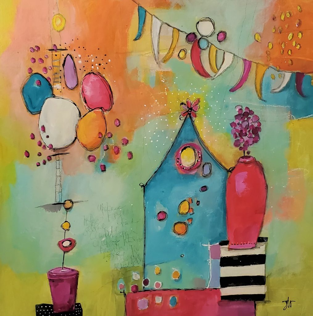Jodi Ohl is a best-selling author, award winning mixed media artist and creative instructor, originally from Dunkirk, NY, who now resides in Aberdeen, NC. Having left her day job in 2011 to pursue her artistic career full time, she has built a body of work that is known for its distinctive texture, bold color combinations which are often whimsical or abstract compositions, as well as motivational in nature.