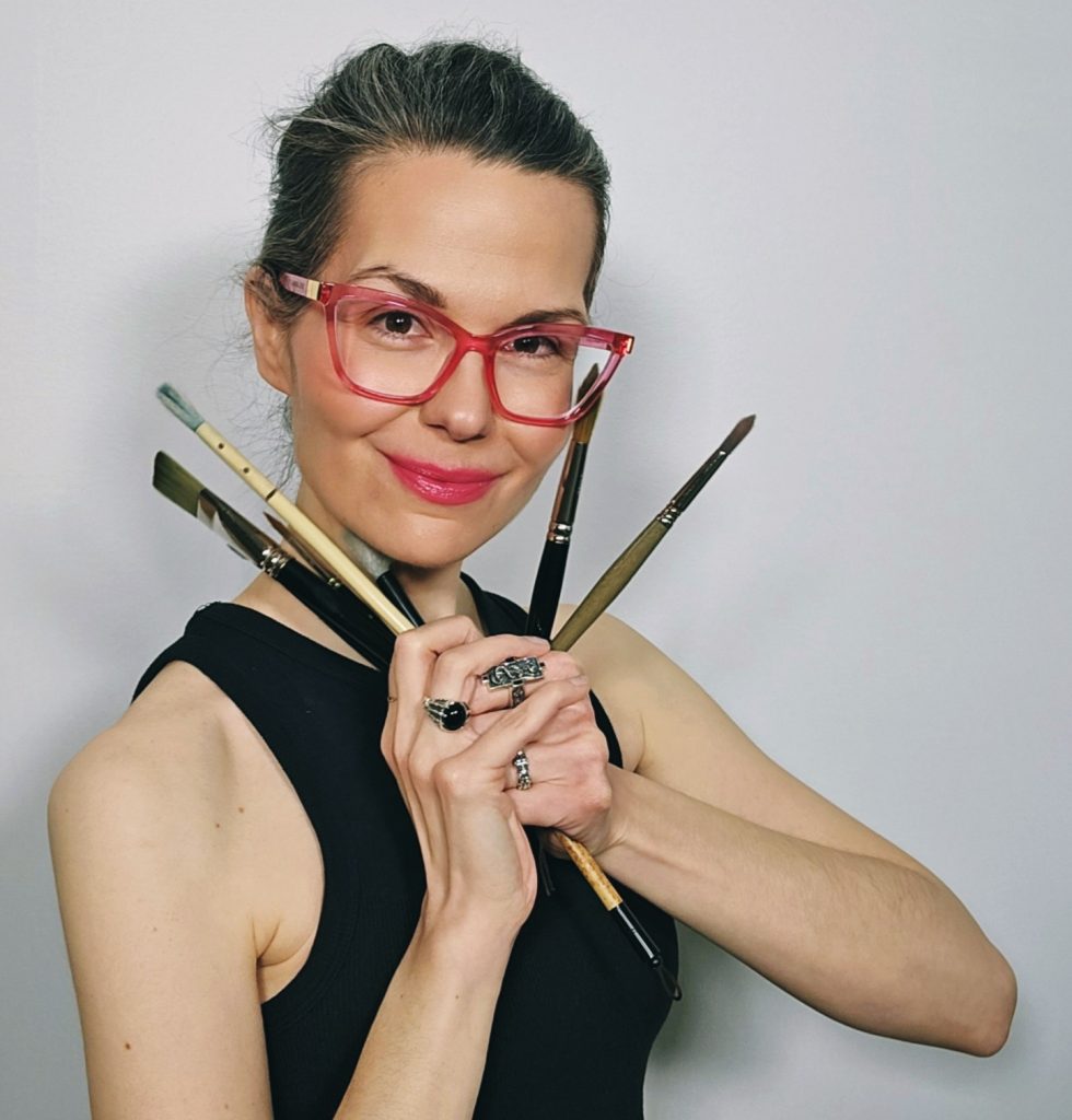 Renata Loree is a mixed media artist, originally from Czech Republic, she has left her nest at an early age in a pursuit of her dream. She really was not clear at what it was, but probably something about freedom of self expression. That pursuit has taken some major twists and turns, but eventually at the age of 47, she decided to be an artist, and she has painted ever since then every day (most days). Her art eventually raised some following online and she started to teach classes to let other know how was she doing what she did. That of course tickled her pink and she realized that she really enjoyed teaching as well.
